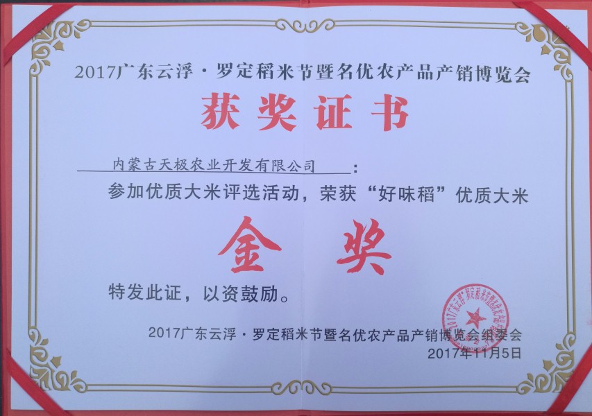 “好味稻”优质大米奖