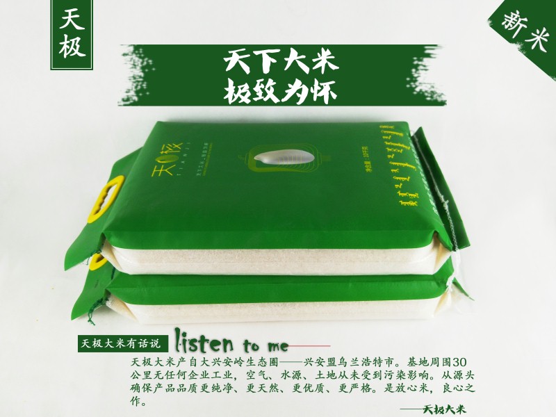 天极大米基地周围30公里无任何工业企业,空气水源、土地未受到污染影响。从源头确保大米品质更天然、更优质、更严格。