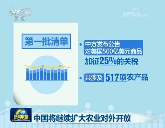 农业农村部副部长韩俊在接受央视记者专访时表示,在以习近平同志为核心的党中央的坚强领导下,我们坚决维护国家核心利益,理性处理当前中美经贸问题,在农业领域不得不采取的必要反制措施,是理性和克制的。中国将积极、稳妥、有序扩大农业对外开放。
