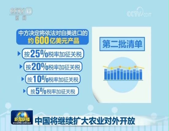 到目前为止,我国公布了两批对自美进口商品加征关税清单。第一批清单,中方发布公告对美国500亿美元商品加征25%的关税,共涉及517项农产品。第二批清单,中方决定将依法对自美进口的约600亿美元产品,按照25%、20%、10%、5%四档不同税率加征关税,涉及387项农产品。目前已对近九成自美进口农产品加税。